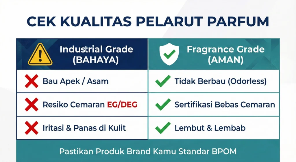 Apakah kamu sering bingung kenapa parfum buatanmu wanginya cepat hilang, aromanya terasa “pecah”, atau cairannya terlihat keruh setelah beberapa hari? Masalah teknis ini biasanya bukan disebabkan oleh kualitas bibit parfum yang buruk, melainkan pemilihan pelarut yang kurang tepat.
