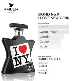 Bond No. 9 I Love New York adalah parfum uniseks yang menghadirkan penghormatan manis untuk semangat kota New York penuh energi, kebebasan, dan vitalitas abadi. Diluncurkan pada tahun 2011 sebagai bagian dari koleksi I Love New York yang memperingati satu dekade tragedi 9/11. Aromanya dibuka lembut dengan perpaduan bergamot, lily of the valley, dan pepper yang menyegarkan dan membangkitkan perhatian. Di hati, keharuman ini menampilkan sentuhan gourmand yang kaya dan nyaman melalui infusi biji kopi, kakao natural, dan kastanye krim yang hangat. Komposisi ditutup dengan lapisan mendalam dari patchouli eksotis, leatherwood, sandalwood, dan vanilla yang menghadirkan kesan manis dengan nuansa seperti rum. Parfum ini bagaikan secangkir kopi pagi terbaik—hangat, membangkitkan, dan meninggalkan kesan mendalam bagi siapa pun yang menciumnya. ☕🗽