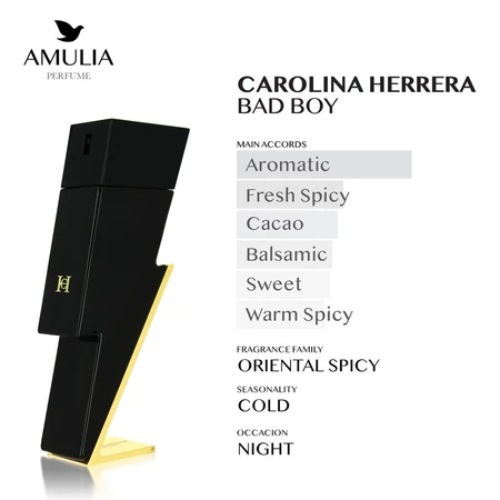 Bad Boy oleh Carolina Herrera adalah parfum pria beraroma Oriental Spicy yang diluncurkan pada tahun 2019. Diciptakan oleh Quentin Bisch dan Louise Turner, parfum ini menggambarkan dualitas karakter pria masa kini—kuat namun sensitif, berani namun lembut.