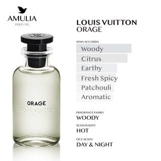 Orage oleh Louis Vuitton adalah parfum beraroma Woody yang dirancang khusus untuk pria. Diluncurkan pada tahun 2018, parfum ini merupakan hasil karya dari perfumer terkenal Jacques Cavallier Belletrud. Wewangian ini dibuka dengan aroma segar dan menyegarkan dari Bergamot dan Grapefruit, memberikan kesan pertama yang cerah dan maskulin. Di bagian tengah, aroma lembut dari Iris berpadu dengan Hedione dan sentuhan pedas dari Lada, menciptakan keseimbangan yang elegan dan modern. Basis parfum ini ditopang oleh kehangatan Java Vetiver Oil, Patchouli, Iso E Super, dan White Musk, menghasilkan kesan akhir yang dalam, mewah, dan tahan lama.