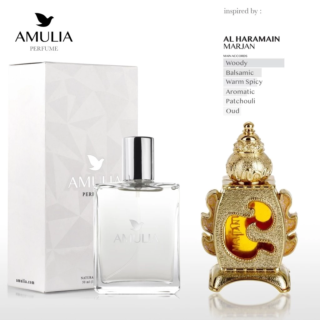 Amulia menghadirkan parfum aroma yang terinspirasi dari keharuman ini, menghadirkan sensasi serupa dengan karakter yang tetap elegan dan harga yang lebih terjangkau.