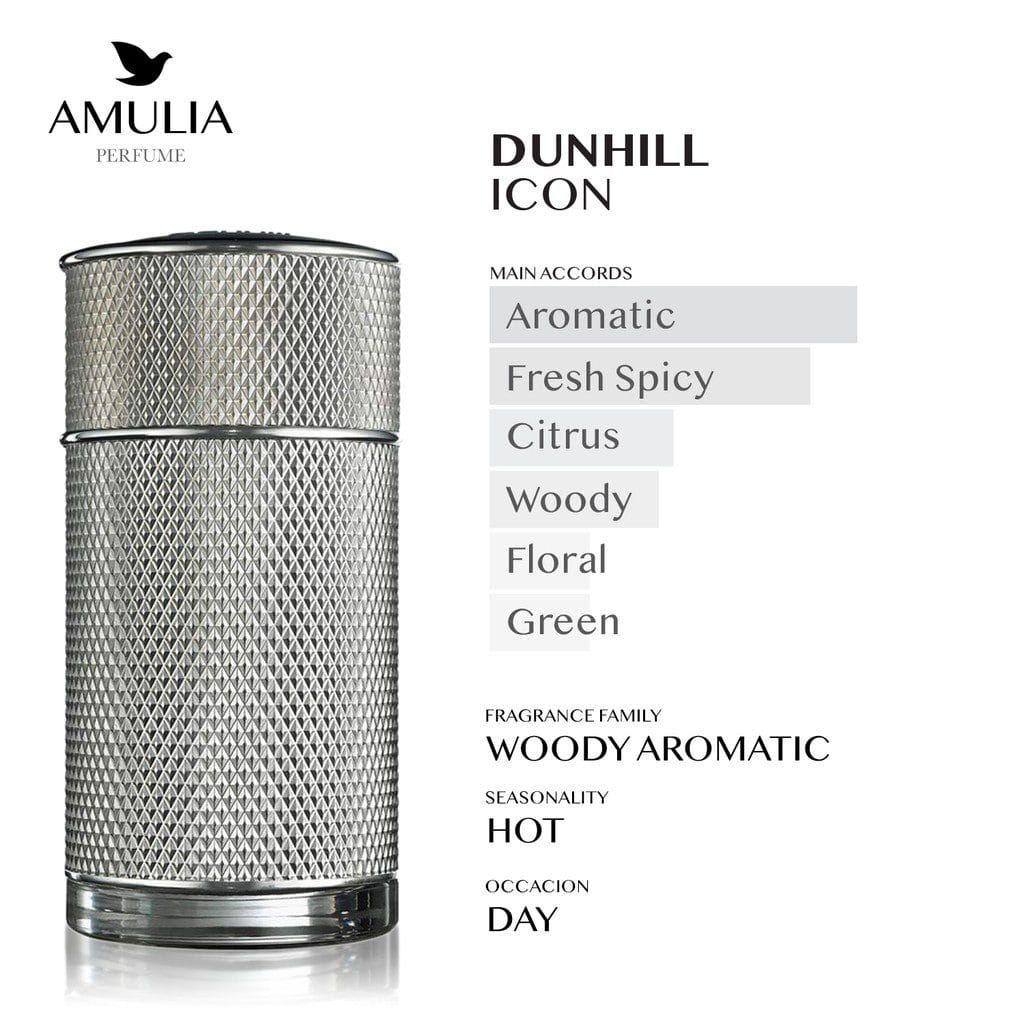 Alfred Dunhill Icon adalah parfum pria beraroma aromatic woody yang diluncurkan pada awal tahun 2015 oleh rumah mode asal Inggris, Dunhill, di bawah arahan kreatif baru John Ray. Diciptakan oleh perfumer kenamaan Carlos Benaim, parfum ini merupakan perwujudan dari keanggunan klasik khas Dunhill yang dipadukan dengan sentuhan modernitas. “Icon adalah ekspresi sempurna dari kehalusan alami—warisan mewah dan klasik dari rumah Dunhill, namun tetap relevan untuk pria masa kini,” ujar Benaim. Komposisi aromanya diawali dengan kesegaran bergamot dan neroli absolute, lalu berkembang ke aroma tengah yang kaya dan maskulin dari black pepper, lavender, dan cardamom. Di bagian dasar, parfum ini menampilkan campuran hangat dan membumi dari oud, vetiver, leather, dan oak moss, menciptakan aroma yang dalam dan elegan.