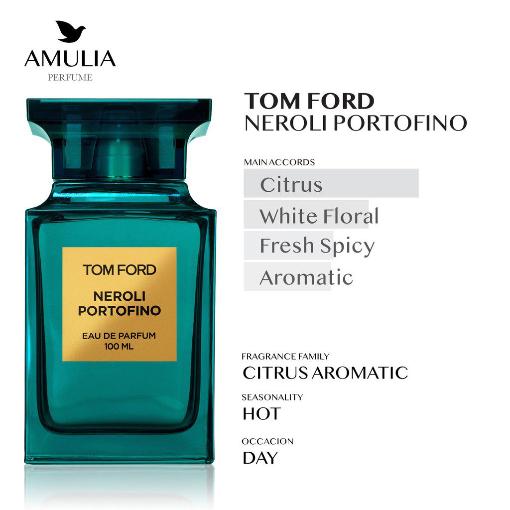 Neroli Portofino oleh Tom Ford adalah parfum unisex dengan karakter citrus aromatic yang segar dan mewah. Diluncurkan pada tahun 2011 dan diciptakan oleh Rodrigo Flores-Roux, parfum ini terinspirasi dari keindahan pesisir Italia yang elegan dan hangat. Aroma dibuka dengan kombinasi cerah bergamot, jeruk mandarin, lemon, dan jeruk pahit, diperkaya oleh nuansa herbal dari lavender, rosemary, dan myrtle. Di bagian tengah, campuran bunga jeruk Afrika, neroli, melati, dan pitosporum memberikan aroma floral yang lembut dan sensual. Ditutup dengan kehangatan amber, angelica, dan ambrette, parfum ini memancarkan kesegaran yang klasik dan memikat.